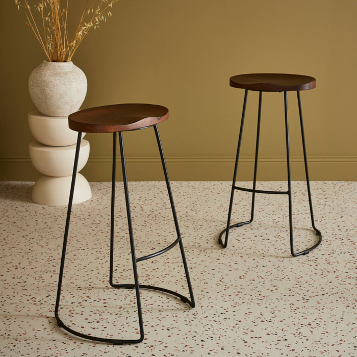 Lot de 2 tabourets de bar réglables 61.5/83.5cm - Noah - simili cuir noir - hauteur réglable. repose-pieds