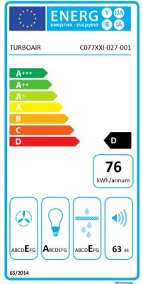 Consommation d'énergie Classe d'efficacité énergétique: D, Consommation annuelle d'énergie en kWh: 76 kWh, Classe d'efficacité d'évacuation de la vapeur et fumées: E, Classe d'efficacité de l'éclairage: A, Classe d'efficacité de filtration des graisses: E